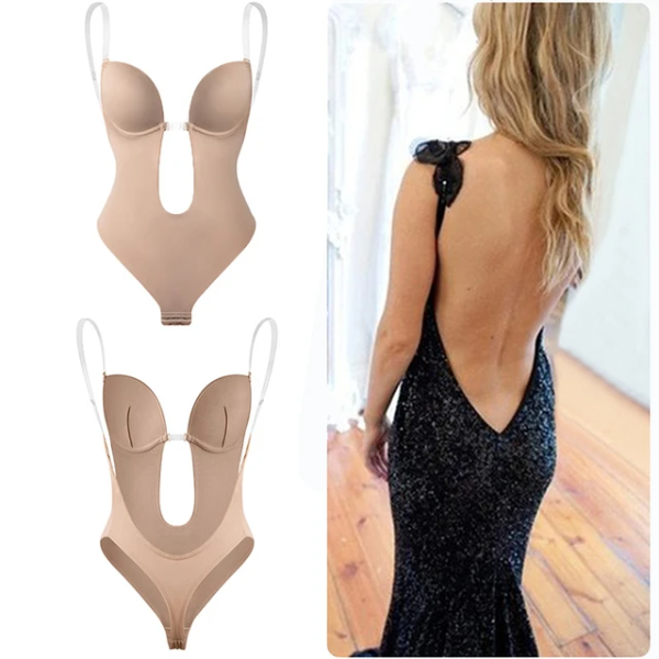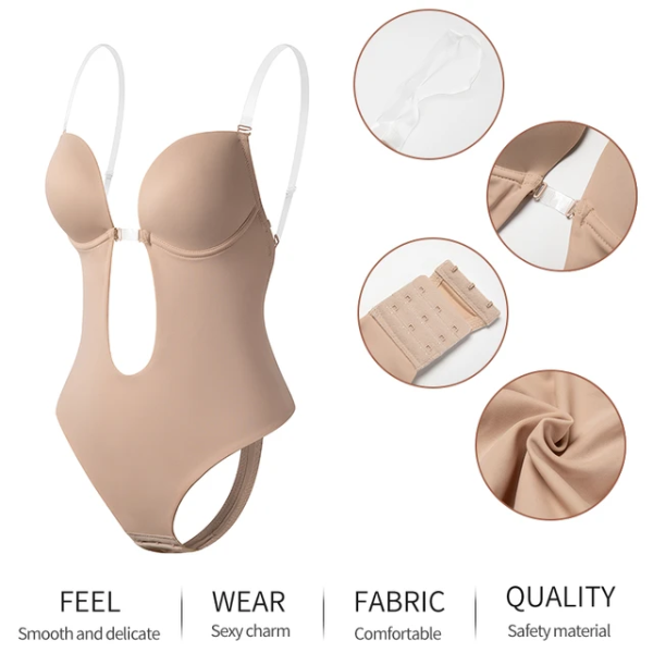 Body segunda piel con espalda descubierta en color negro y beige